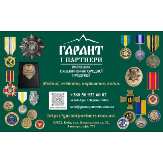 Окремим напрямом діяльності компанії «Гарант і Партнери» є виготовлення нагородної продукції: медалей, нагрудних знаків, жетонів, орденів, пам’ятних монет і статуеток. Деякі з нагород доступні лише за наявності відповідного посвідчення — наприклад, медалі для учасників АТО.
