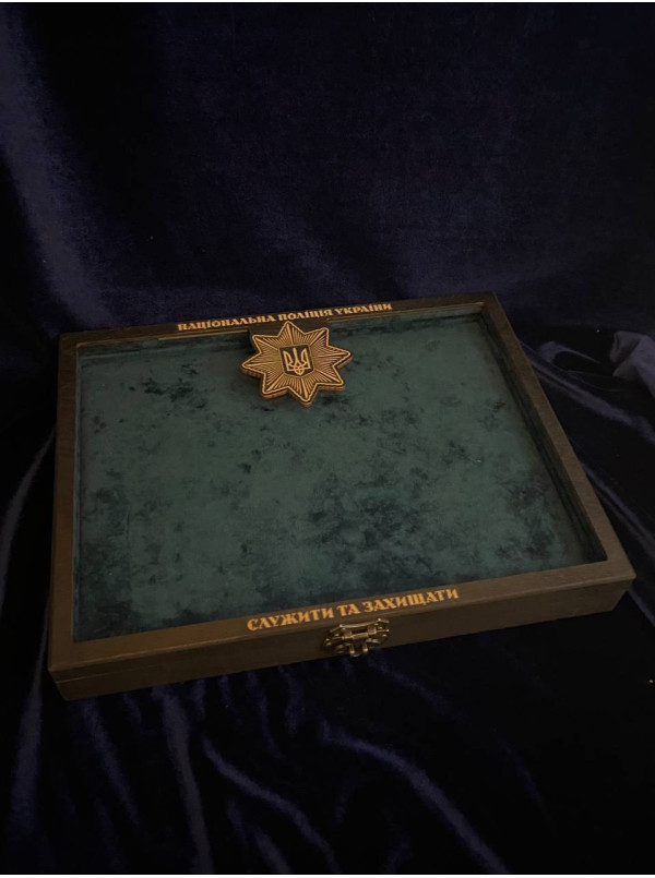 Футляр дерев'яний зі склом НПУ Служити та захищати_330х250х45мм (40556)