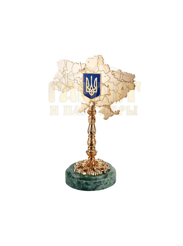 Представляємо Вам барвисту статуетку від компанії «Гарант і Партнери» - «Карта України». Дана статуетка зроблена з латуні, покрита позолотою. Підставка з мармуру. Статуетка може бути виготовлена під Ваші особисті запити (Ваш логотип, герб, девіз, побажання, іменні написи). Також Ви можете додатково до статуетки придбати футляр (оксамитовий, баладек, картонний).